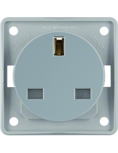 Integro Flow Gniazdo z uziemieniem standard brytyjski z podwyższoną ochroną styków, jasnoszary, mat 962622506 Berker Hager