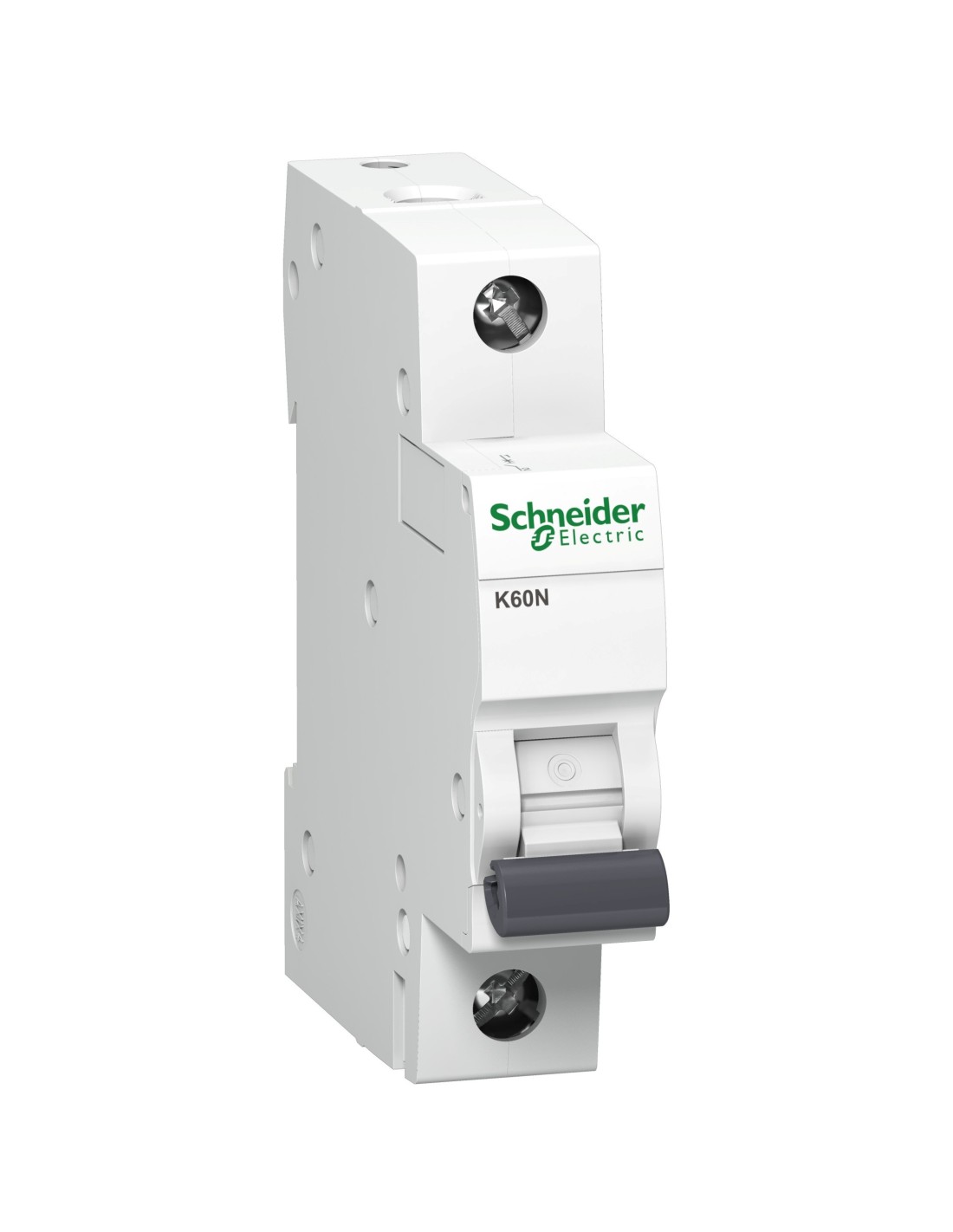 Schneider Electric K60N-B63 ,o numerze A9K01163. Wyłącznik nadprądowy dopasowany do potrzeb budownictwa mieszkaniowego i podobnego. Podwójne zaciski od dołu (szyna + przewód). Karbowane zaciski zwiększające pewność podłączenia. Styk migowy - szybkość zamykania styków nie zależy od szybkości manewrowania dźwignią aparatu.