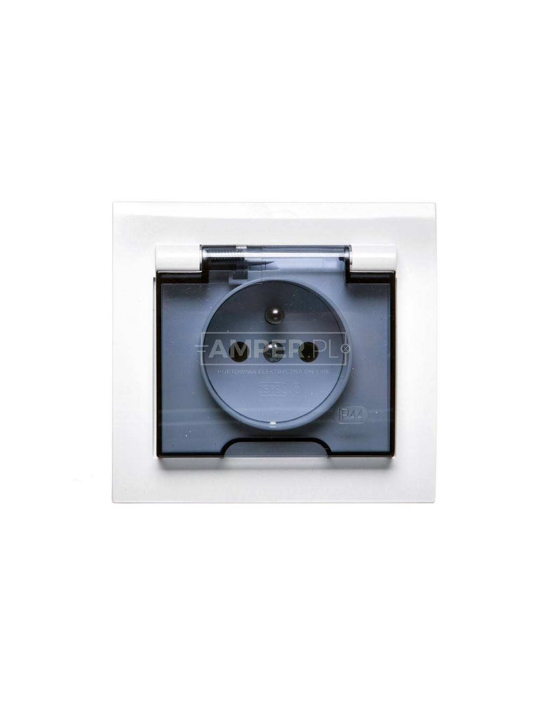 KIER Gniazdo bryzgoszczelne z/u IP44 klapka przezroczysta białe GPH-1WZ/00/d