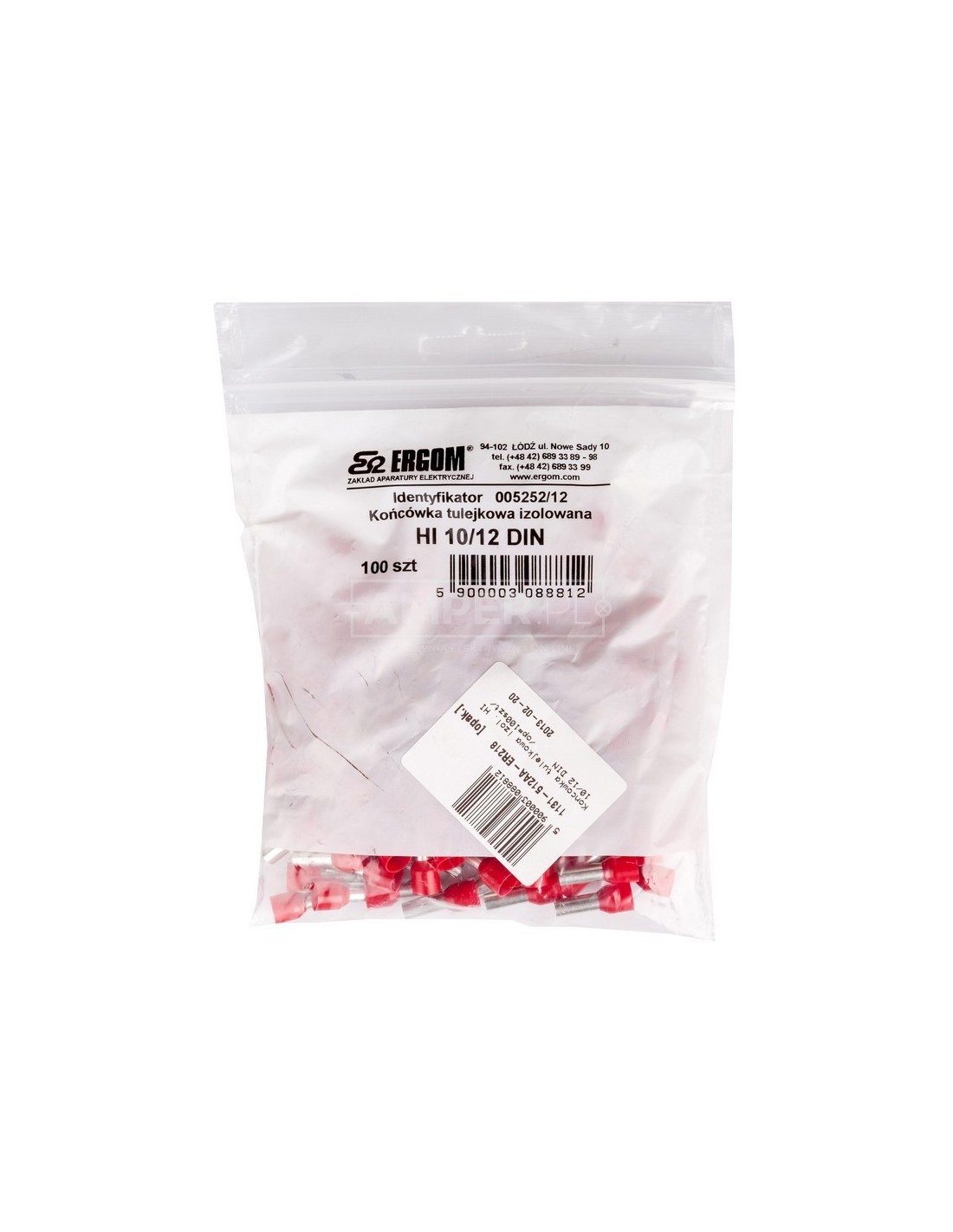 Końcówka tulejkowa izolowana HI 10/12 DIN czerwona E08KH-02010106901 /100szt./