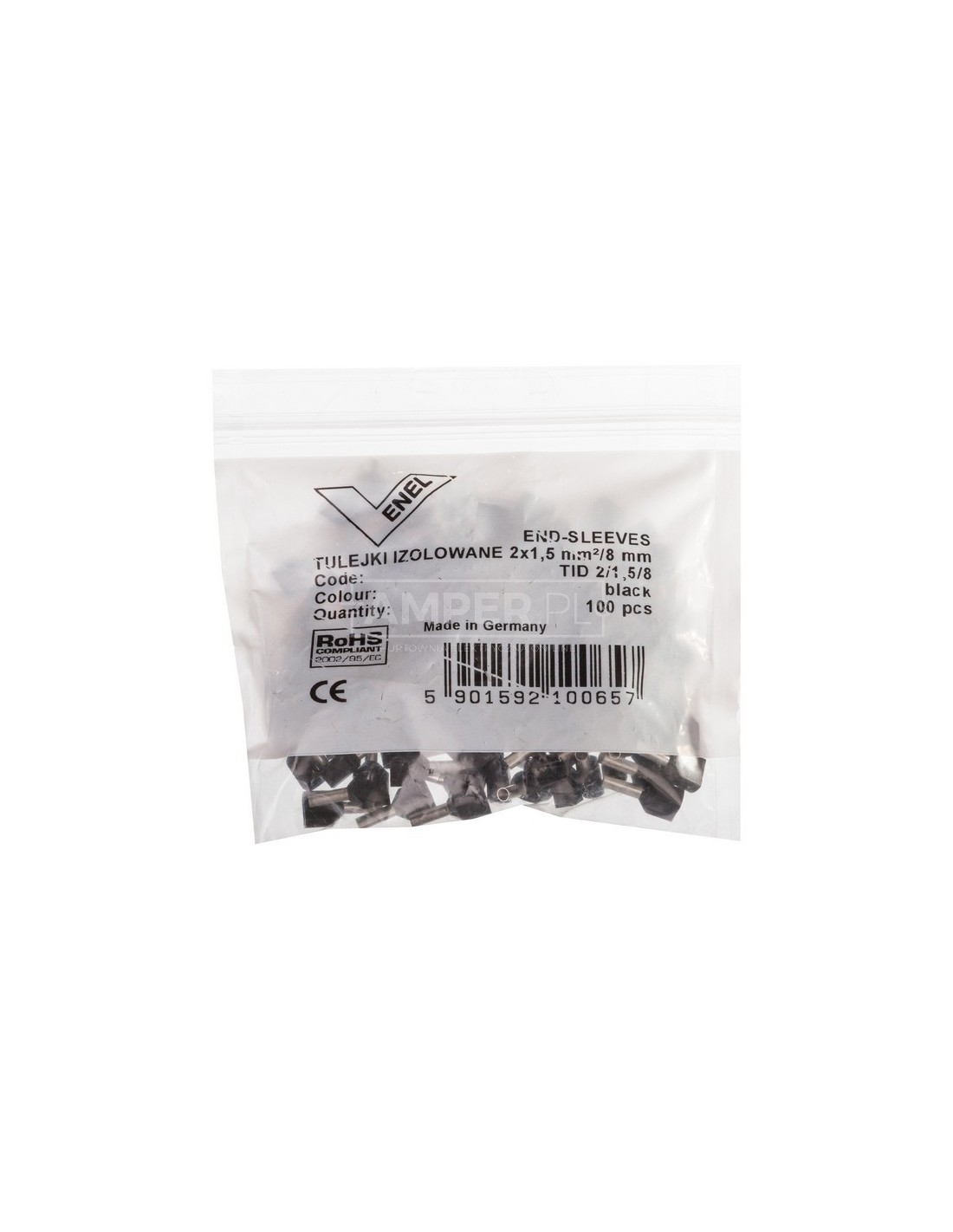 Końcówka tulejkowa izolowana TID 2x1,5mm2/8mm czarna cynowana TID2x1,5L8 /100szt./