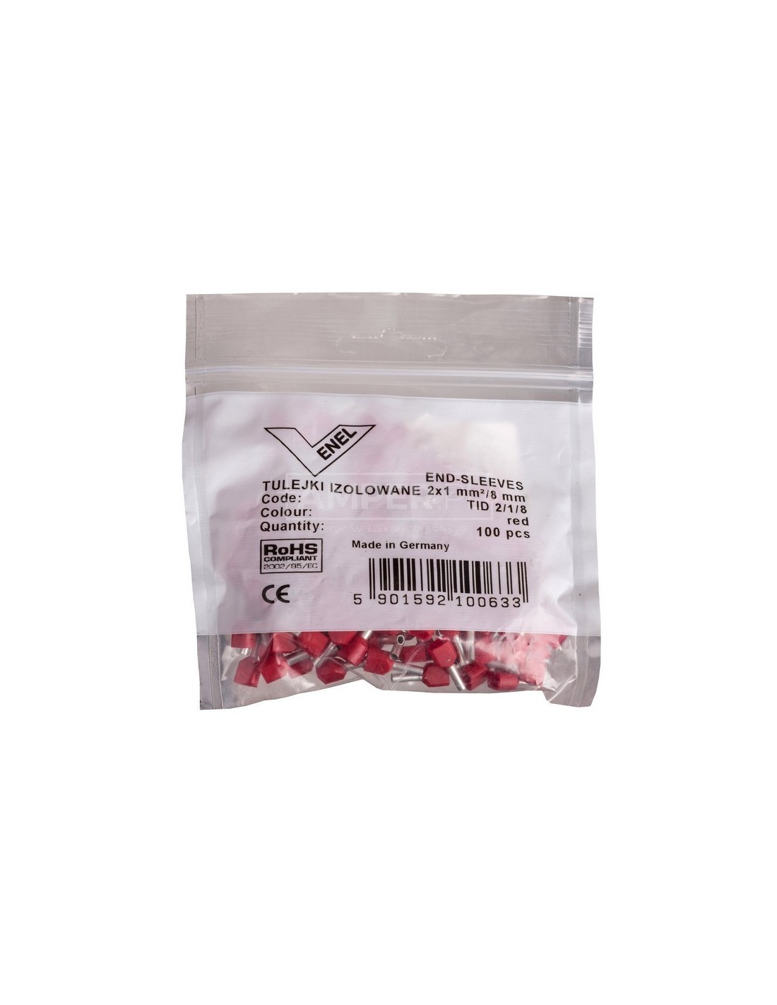 Końcówka tulejkowa izolowana TID 2x1mm2/8mm czerwona cynowana TID2x1L8 /100szt./