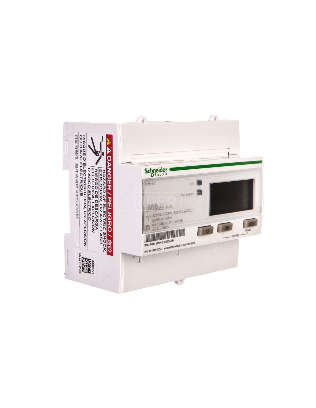 Licznik energii elektrycznej 1/3-fazowy 63A 100-277/173-480V kl.1/B M-Bus MID taryfowy cyfrowy modułowy iEM3135 A9MEM3135