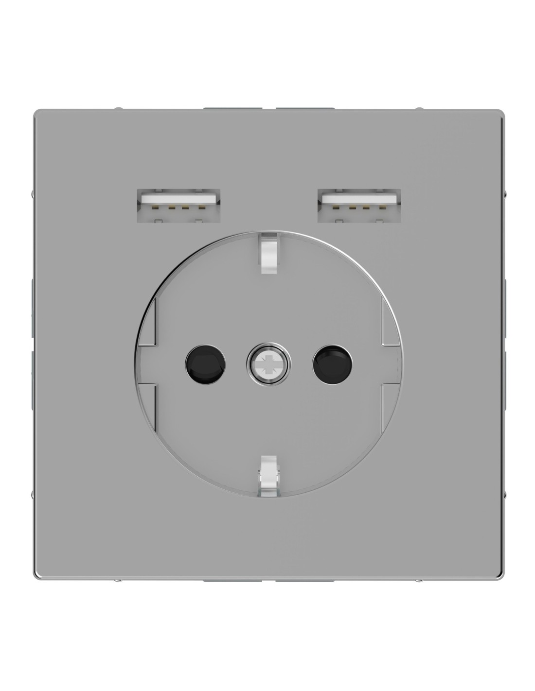 Merten System D Gniazdo pojedyncze SCHUKO + 2XUSB 2.4A 5V stal MTN2366-6036