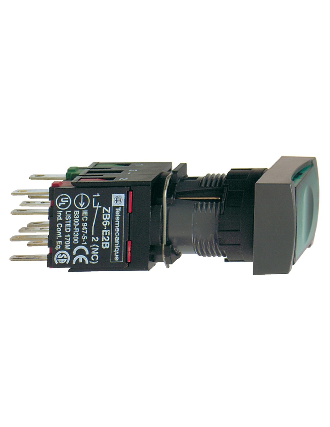 Przycisk kompletny ziel. podśw. prost. O 16, kryty z sam. powr., 12...24V -1NO+1NC XB6DW3B5B