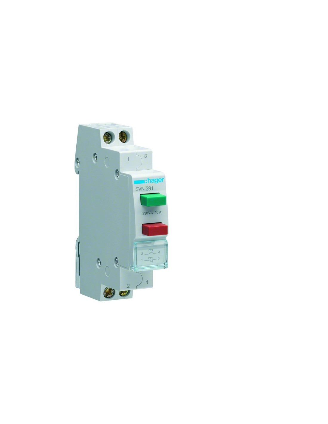 Przycisk sterowniczy 2x 1NO+NC zielony i czerwony Ith16A 230VAC SVN391 Hager