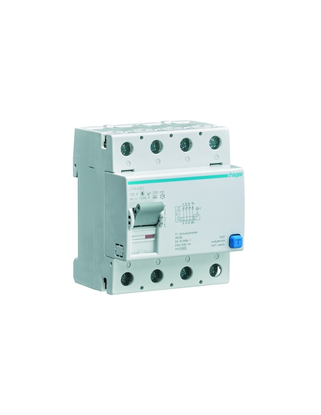 RCCB Wyłącznik różnicowoprądowy selektywny 4P 125A/300mA Typ A-S CPA490 Hager