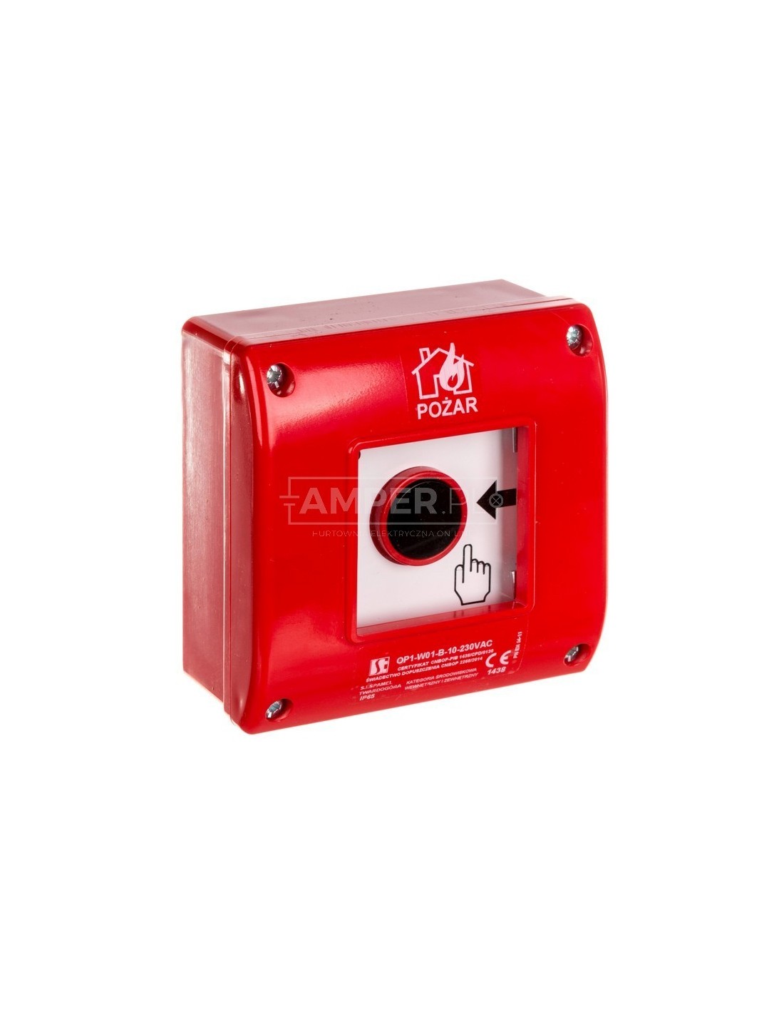 Ręczny ostrzegacz przeciwpożarowy natynkowy, styk 1Z+LED 230V AC OP1-W01-B\10-230