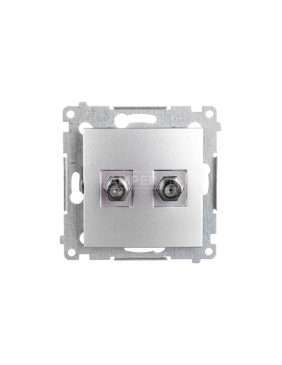 Simon 54 Gniazdo antenowe podwójne typu F srebrny mat DASF2.01/43