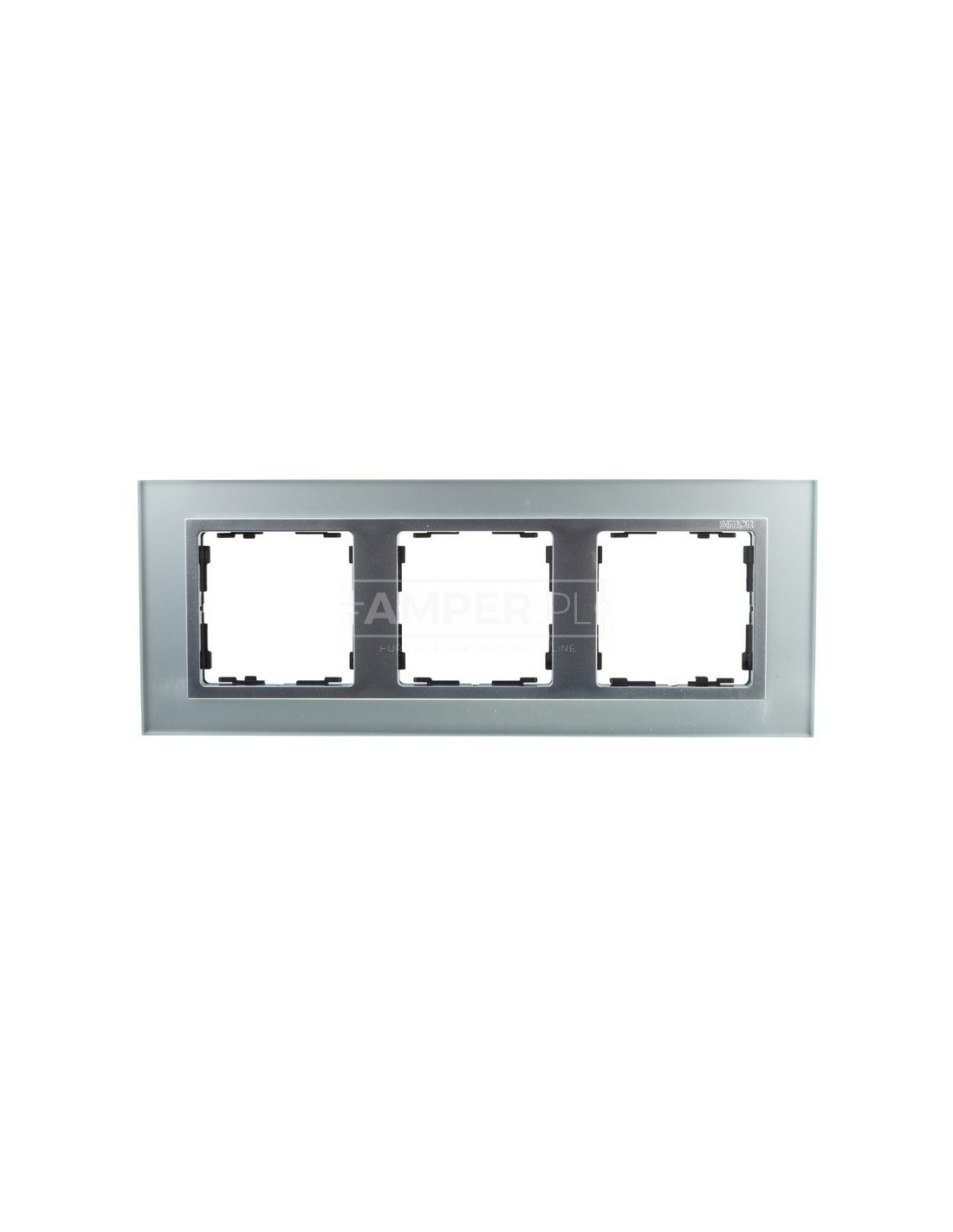Simon 82 Ramka potrójna pozioma szklana srebro/ ramka pośrednia aluminium mat 82937-62
