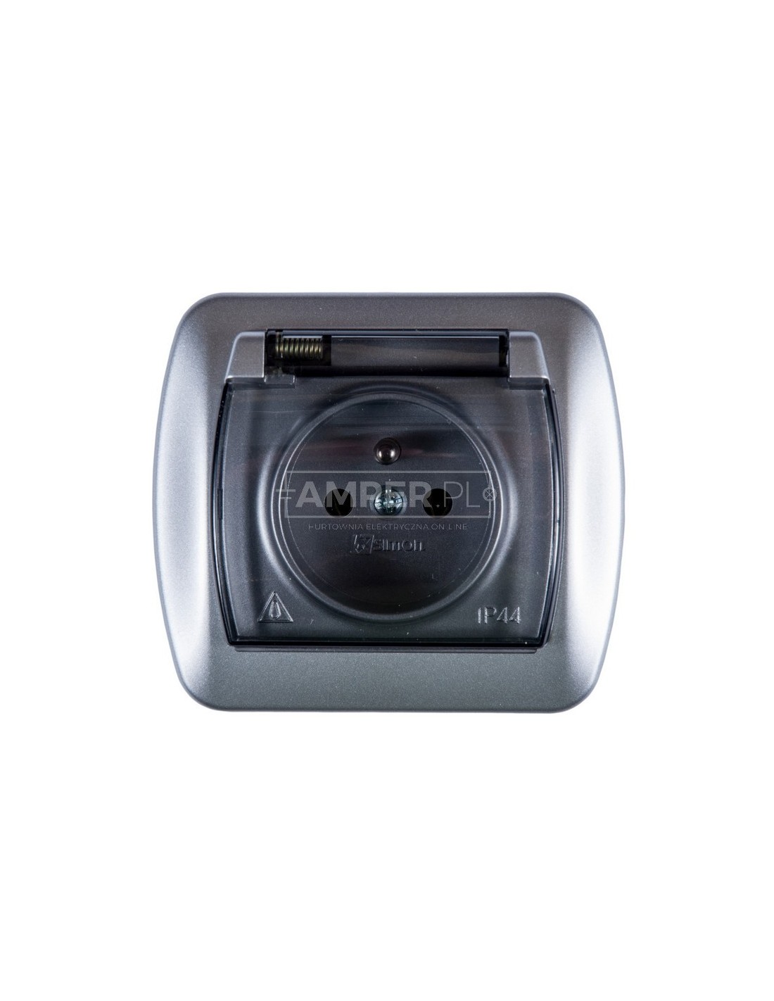 Simon Akord Gniazdo bryzgoszczelne z/u IP44 z klapką dymną aluminium metalizowane AGZ1Be/26a