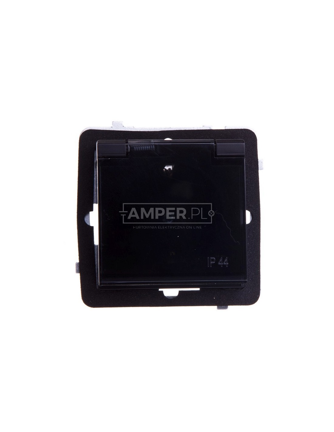 SONATA Gniazdo bryzgoszczelne z/u Schuko IP44 klapka przezroczysta czarny metalik GPH-1RS/m/33/d