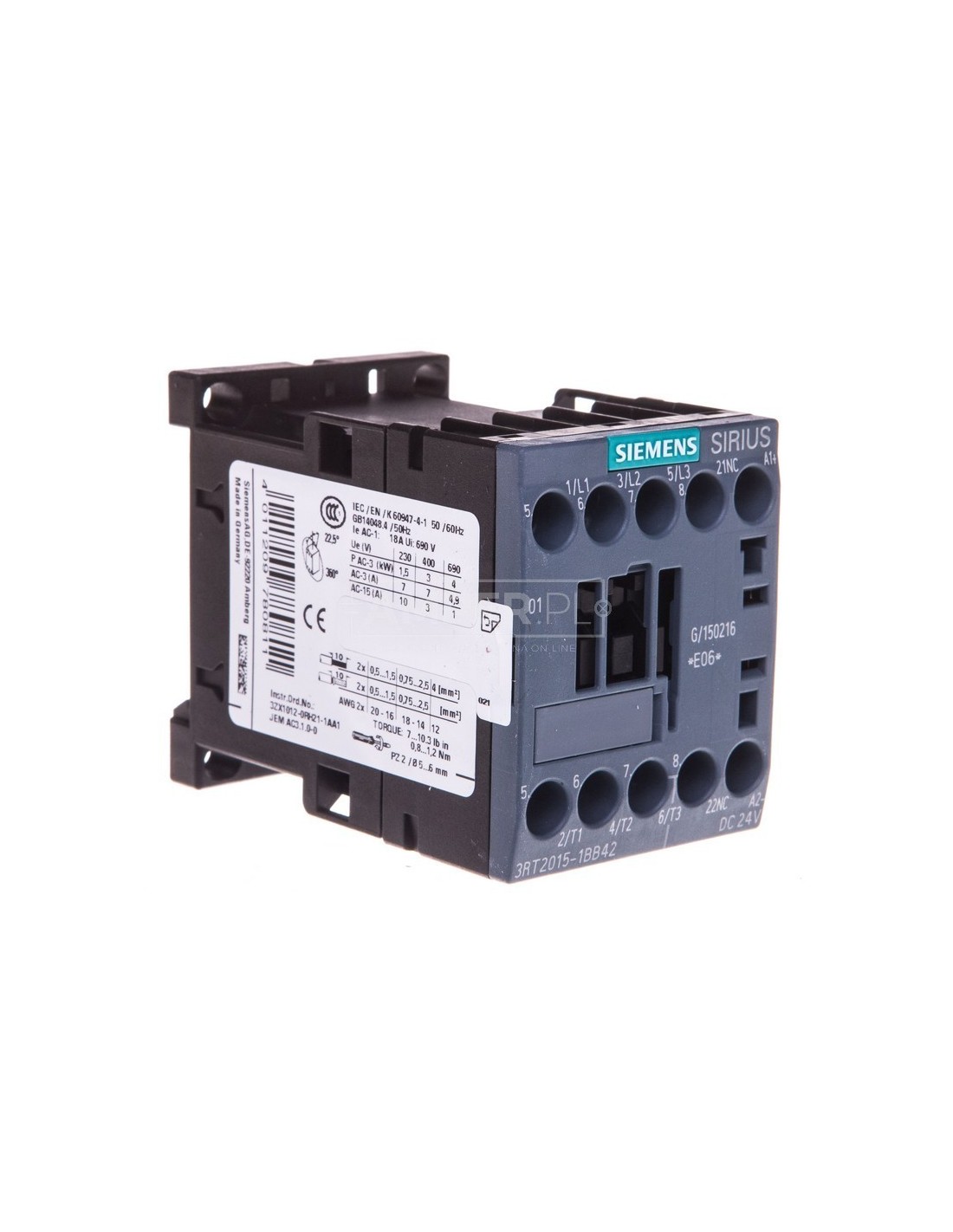 Stycznik mocy 7A 3P 24V DC 0Z 1R S00 3RT2015-1BB42