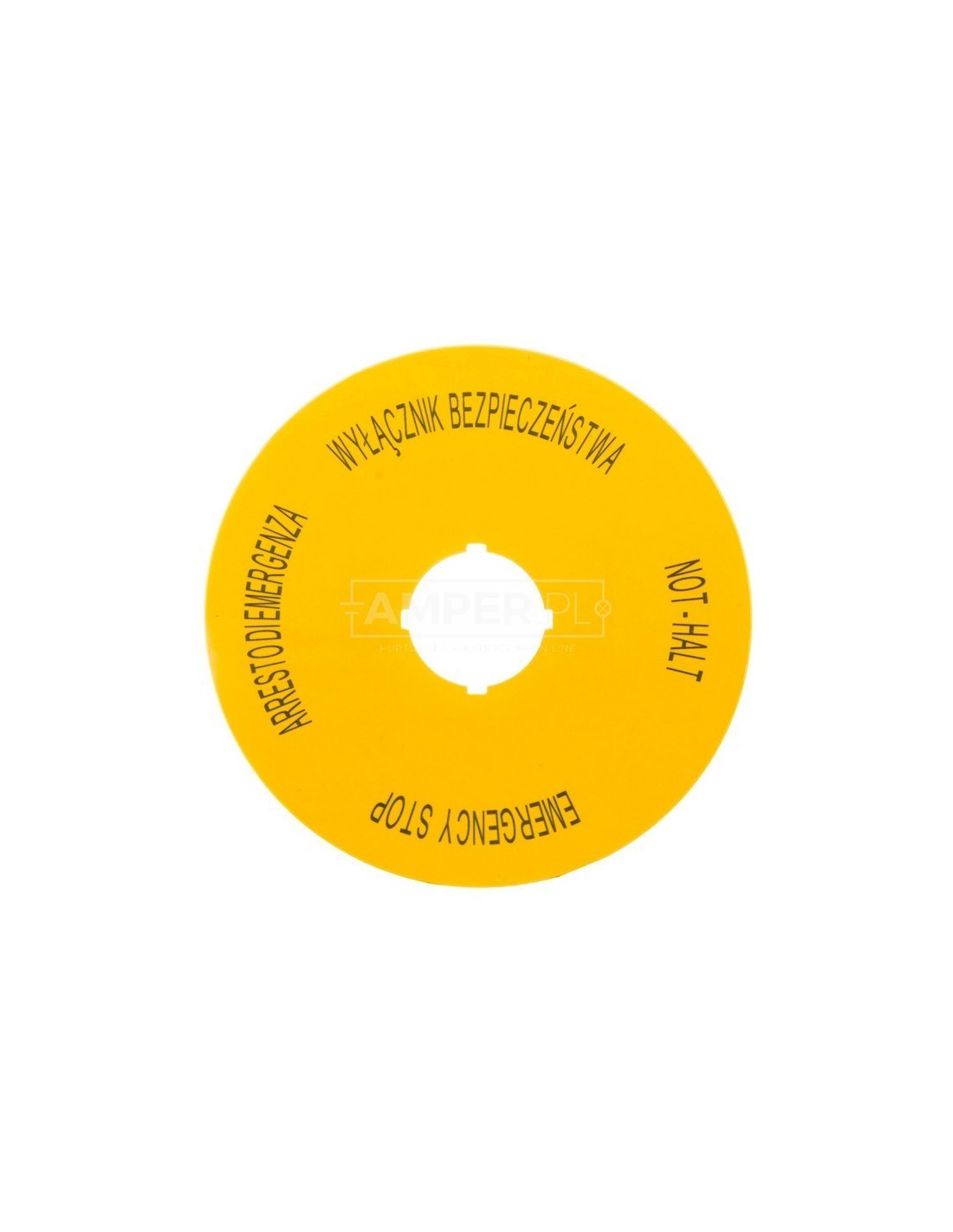 Tabliczka opisowa żółta okrągła WYŁĄCZNIK BEZPIECZEŃSTWA (4 języki) Fi90 M22-XAK15 167640