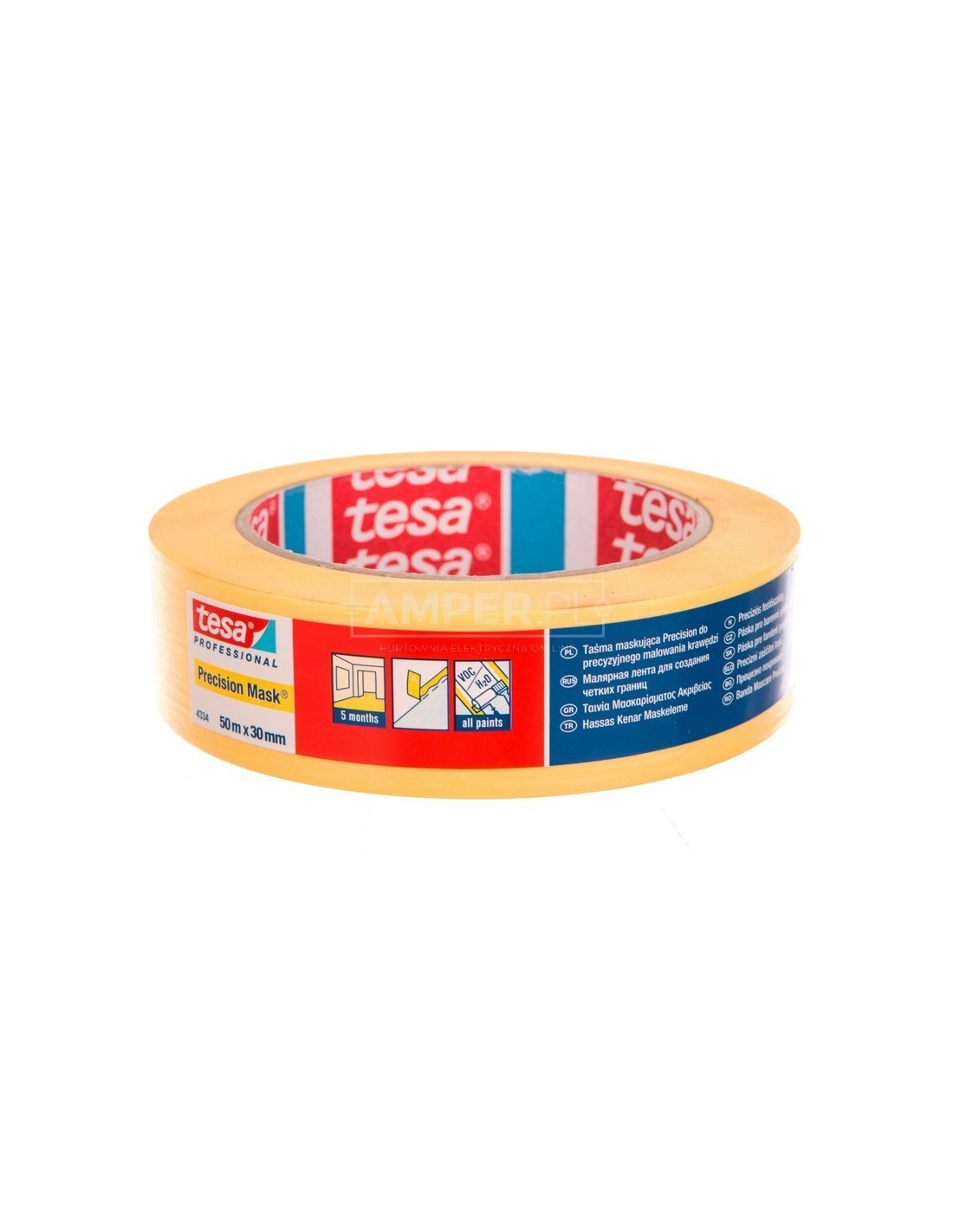 Taśma malarska profesjonalna precyzyjna ekstra cienki papier 5msc (100st C) 50m 30mm żółta 04334-00010-00