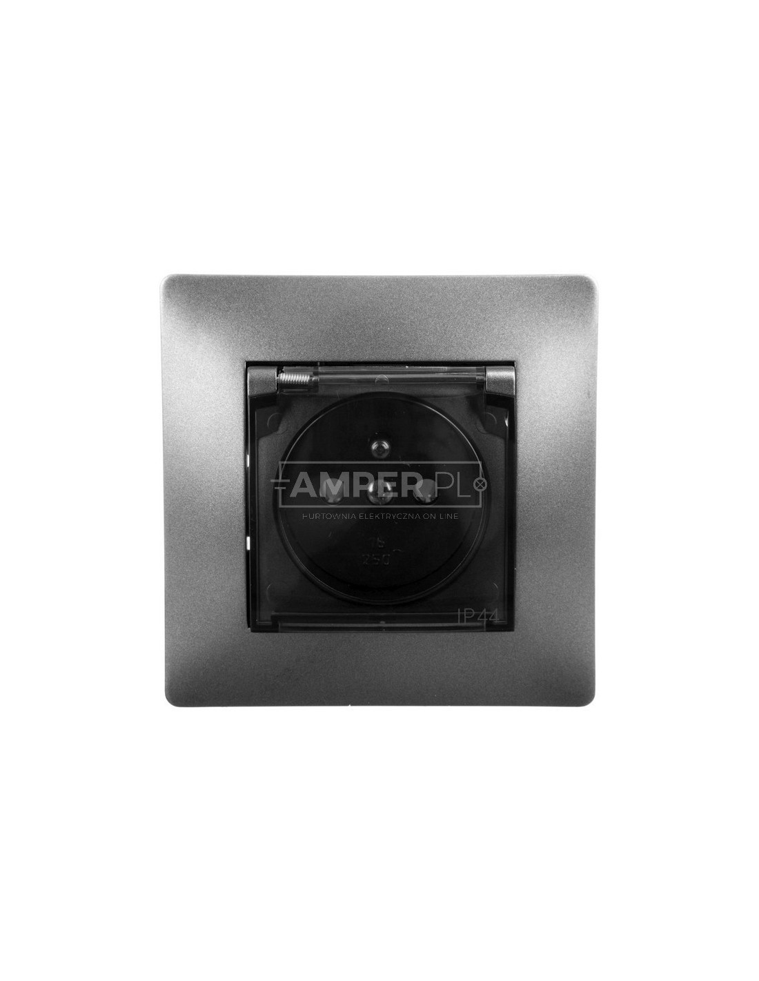 VOLANTE Gniazdo pojedyncze z/u 16A 230V IP44 grafitowe, klapka dymna 2666-08