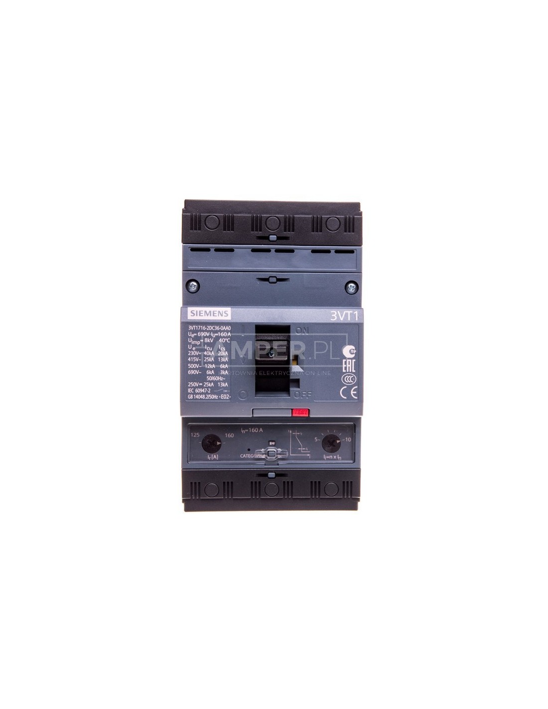 Wyłącznik mocy 160A 3P 25kA 3VT1716-2DC36-0AA0