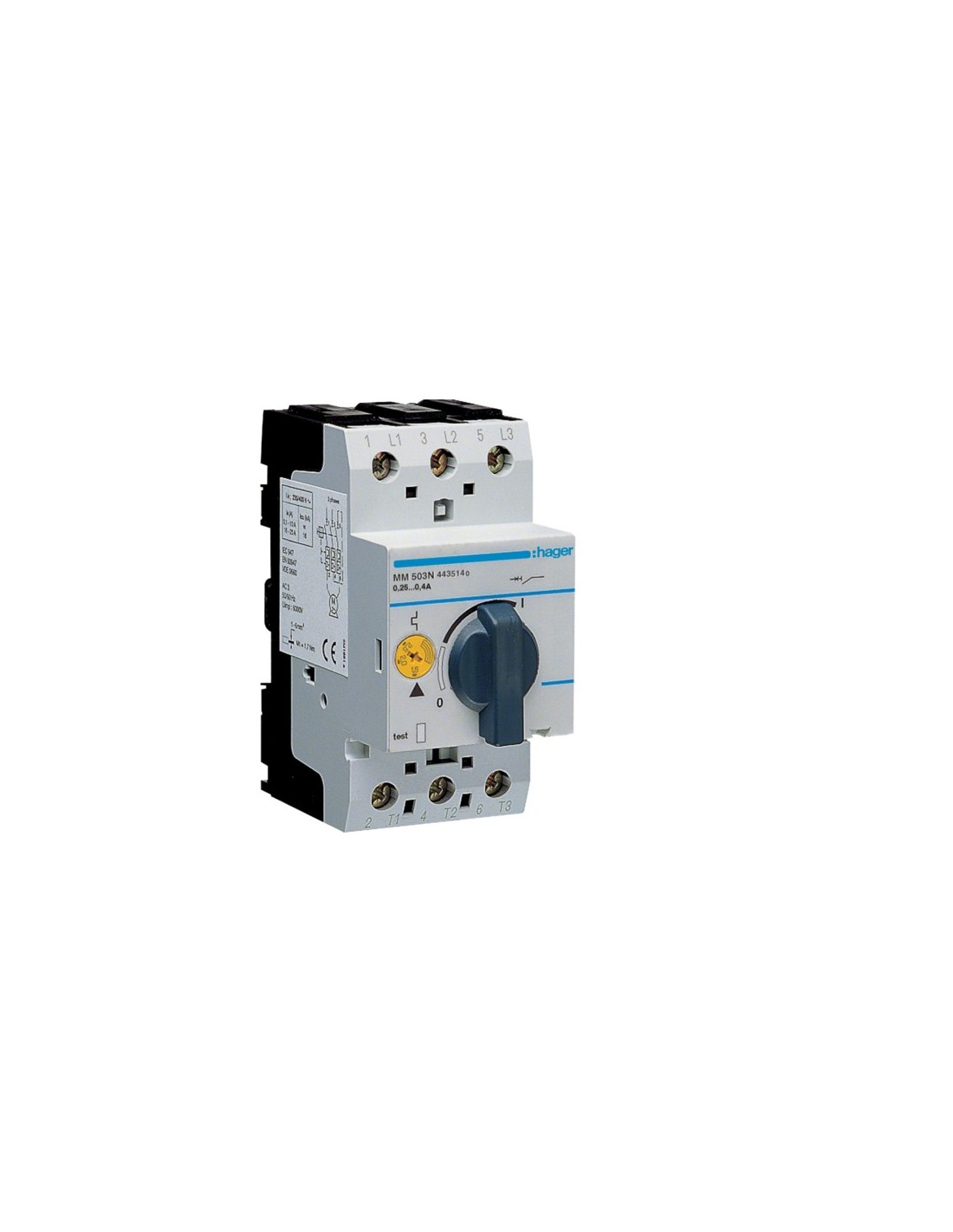 Wyłączniki silnikowe 0,25-0,4A Hager MM503N są doskonale przystosowane do spełniania aktualnych wymogów wynikających z codziennej praktyki elektroinstalacyjnej. Różnorodne możliwości podłączenia i szeroki asortyment wyposażenia pozwalają na realizację bez większego wysiłku także nietypowych rozwiązań na realizowanych obiektach.